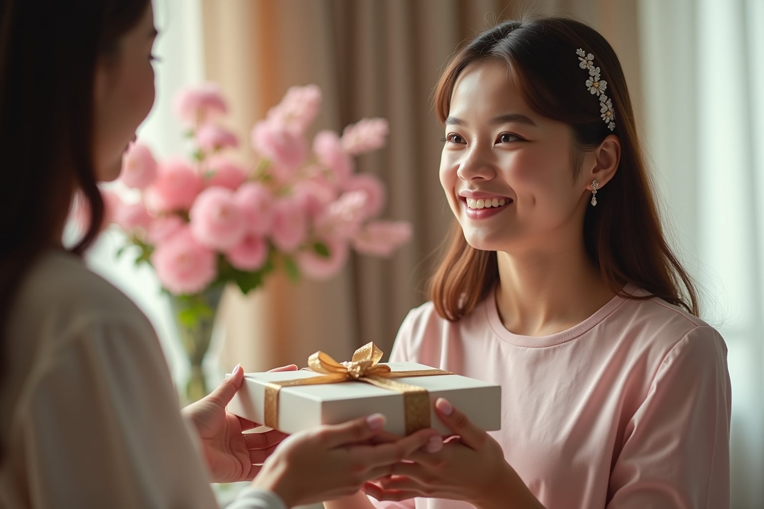 Ohrringe: Zarte Ohrstecker oder elegante Hängeohrringe sind ein schönes Geschenk, das zu vielen Outfits passt. Ohrringe mit funkelnden Steinen oder Perlen sind besonders festlich und passen perfekt zum Anlass.